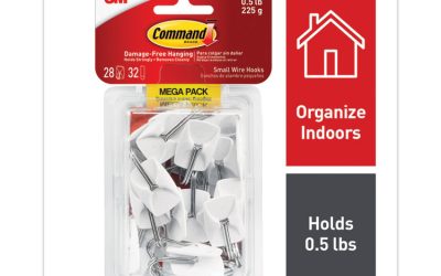General Purpose Hooks, Medium, Plastic, White, 3 lb Capacity, 20 Hooks and 24 Strips/Pack