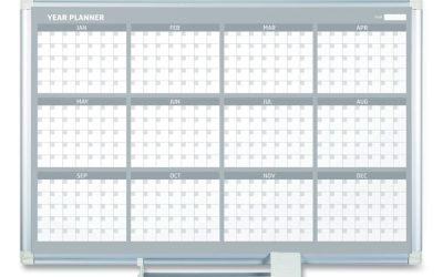 Magnetic Dry Erase Calendar Board, 12-Month, 36 x 24, White Surface, Silver Aluminum Frame