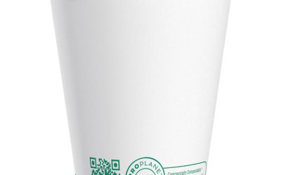 Compostable Paper Hot Cups, ProPlanet Seal, 12 oz, White/Green, 1,000/Carton