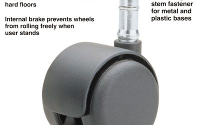 Safety Casters, Standard Neck, Grip Ring Type B Stem, 2″ Hard Nylon Wheel, Matte Black, 5/Set