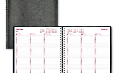 CoilPro Weekly Appointment Book in Columnar Format, 11 x 8.5, Black Lizard-Look Cover, 12-Month (Jan to Dec): 2024