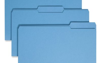 Colored File Folders, 1/3-Cut Tabs: Assorted, Legal Size, 0.75″ Expansion, Blue, 100/Box