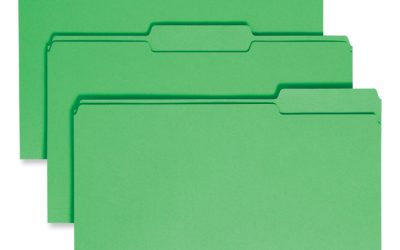 Colored File Folders, 1/3-Cut Tabs: Assorted, Legal Size, 0.75″ Expansion, Green, 100/Box