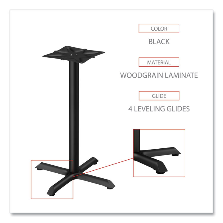 Classic table bases work great to create hospitality, meeting, conference, or quick-huddle setups. Constructed with a reinforced steel base and a single column for stability. The X-shaped base provides room to pull up chairs or stools and allows for ample leg room. Built-in leveling glides help compensate for uneven floor surfaces. Designed for use with Alera® Reversible Laminate Tabletops. Tops and Bases Sold Separately - ORDER BOTH.