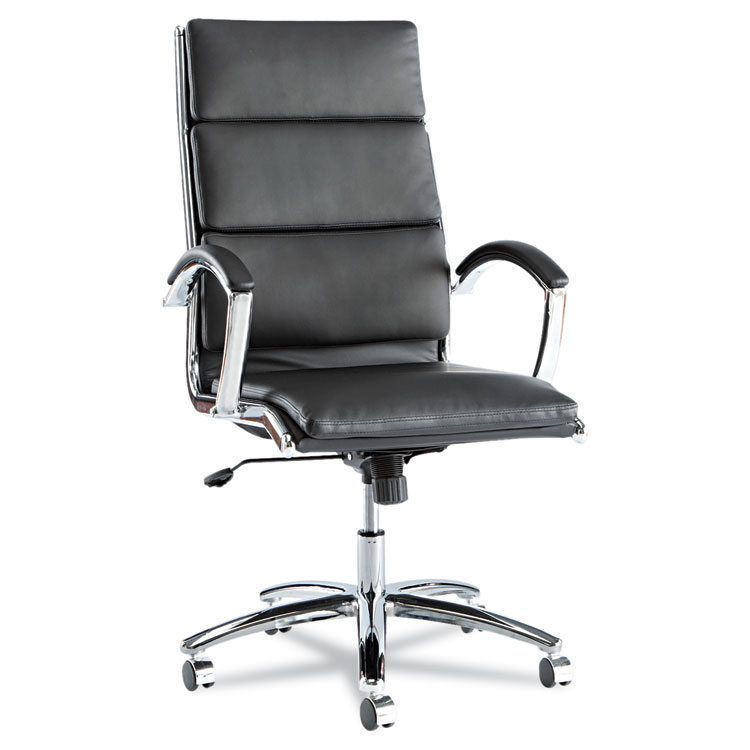 Alera Neratoli High-Back Slim Profile Chair, Faux Leather, 275 Lb Cap, 17.32" To 21.25" Seat Height, Black Seat/back, Chrome