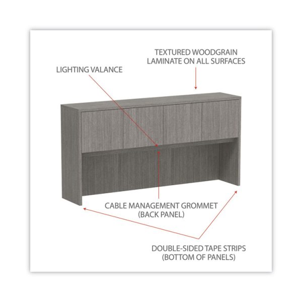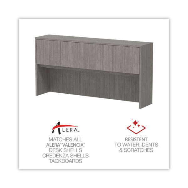 Alera Valencia Series Hutch with Doors, 4 Compartments, 70.63w x 15d x 35.38h, Gray