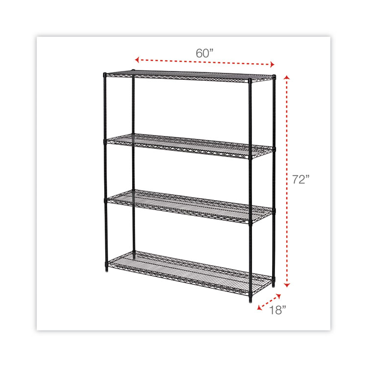 All-Purpose Wire Shelving Starter Kit, Four-Shelf, 60w x 18d x 72h, Black Anthracite Plus