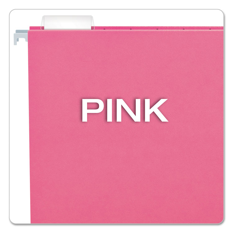 Colored Hanging Folders, Letter Size, 1/5-Cut Tabs, Pink, 25/Box
