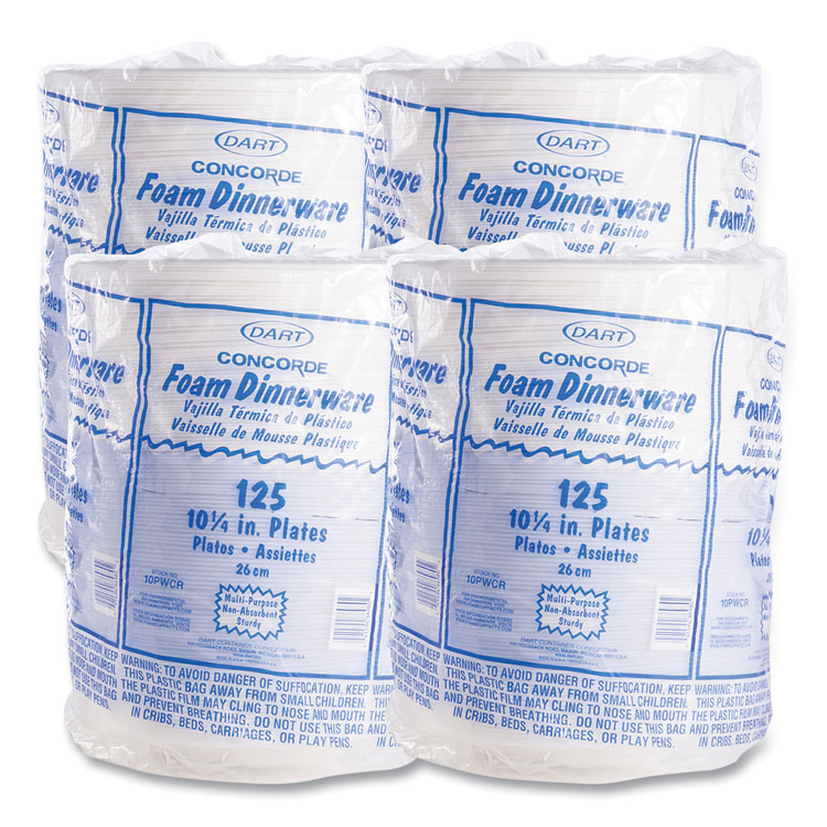 Concorde Foam Plate, 10.25" Dia, White, 125/pack, 4 Packs/carton