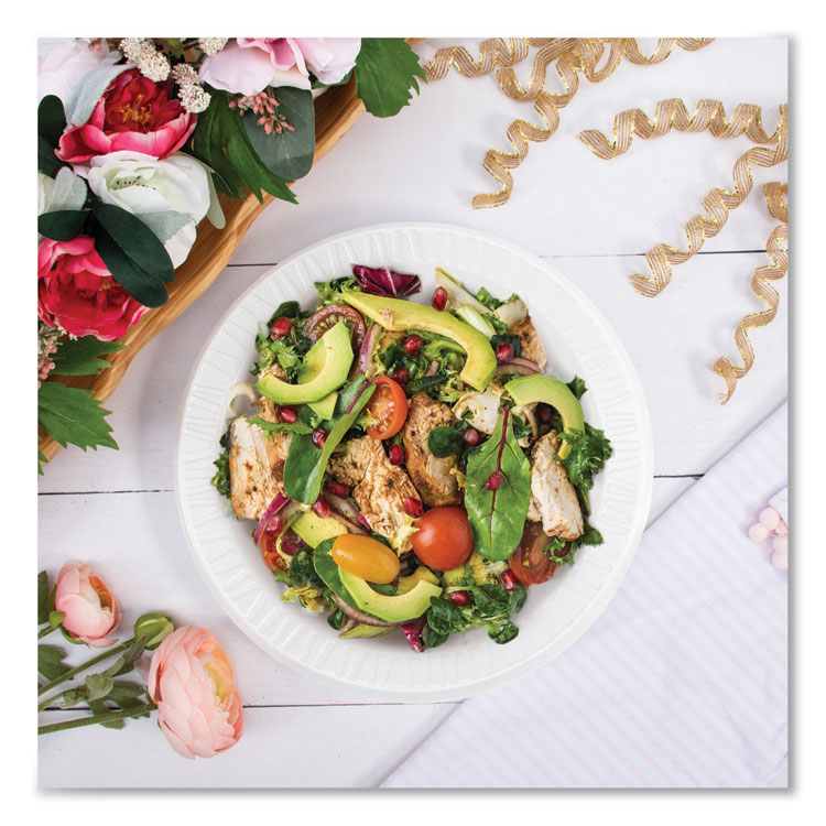 Serving is quick and easy with this non-laminated foam dinnerware. It holds up to hearty portions, hot or cold. Designed so sauces and dressings stay where they're needed with no leak through. Keep hands at a comfortable temperature with the insulated foam. This dinnerware is a simple and affordable solution for serving food anywhere, from food service and catering to offices and hospitals. Whether you’re serving up cafeteria lunches or stocking the break room, this dinnerware is for you.