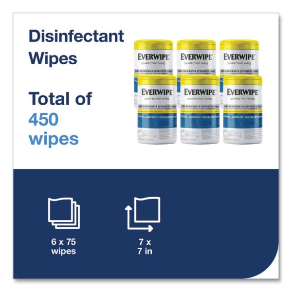 Disinfectant Wipes, 1-Ply, 7 x 7, Lemon, White, 75/Canister, 6 Canisters/Carton