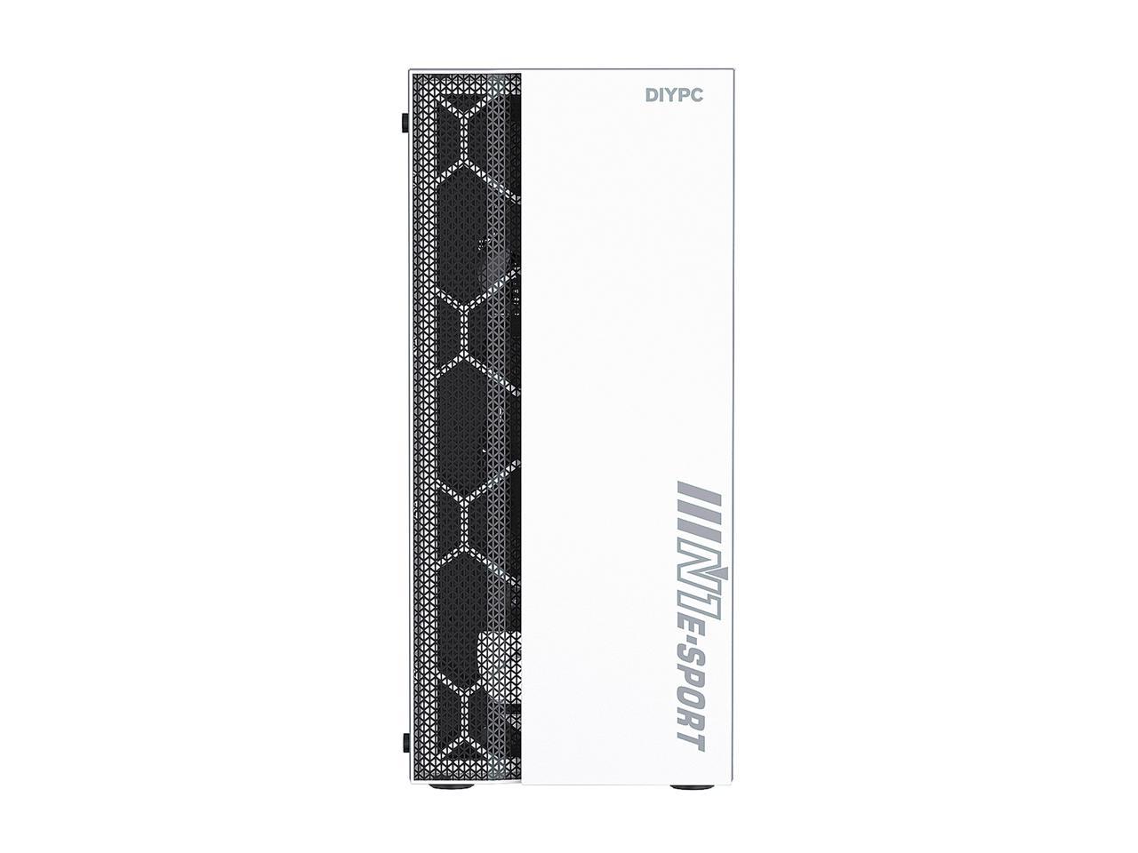 DIYPC DIY-S08-W White USB 3.0 Steel / Tempered Glass ATX Mid Tower Computer Case, 1 x 120mm Fan x Rear (Pre-Installed)