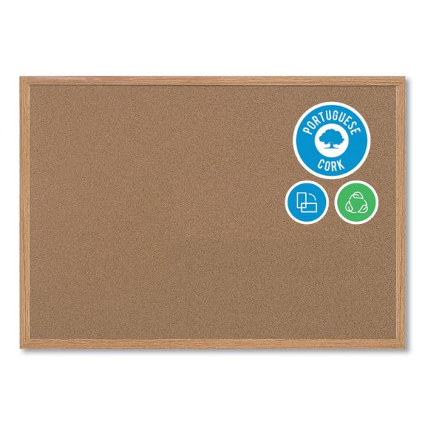 Earth Cork Board, 48 x 36, Tan Surface, Oak Wood Frame