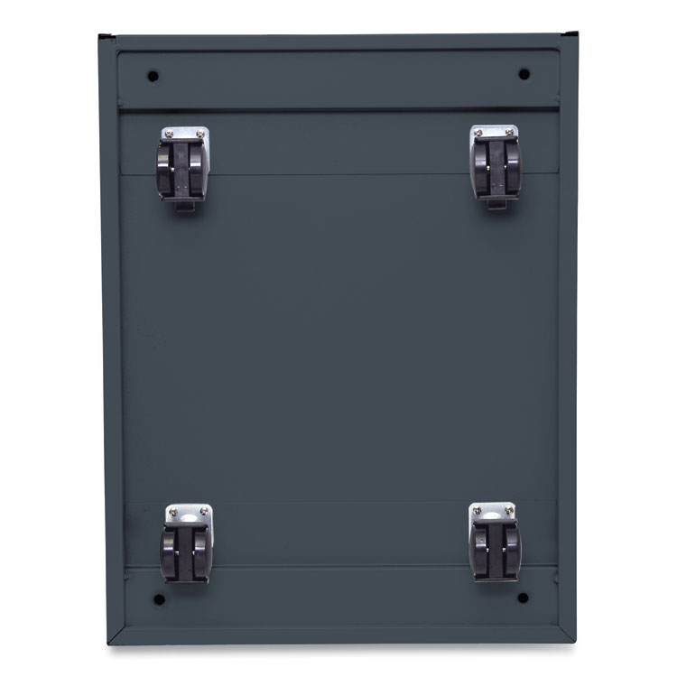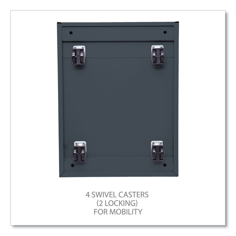 Get organized with a high-sided file cabinet with drawers that accommodate letter or legal-sized hanging files. Steel ball bearing telescoping slide suspension helps drawers glide smoothly and with ease. The counterweight prevents tipping. Equipped with four casters, two locking, two non-locking. Full-length pull permits easy opening. Single key core removable lock with two keys. Durable powder coated finish helps prevent scratches.