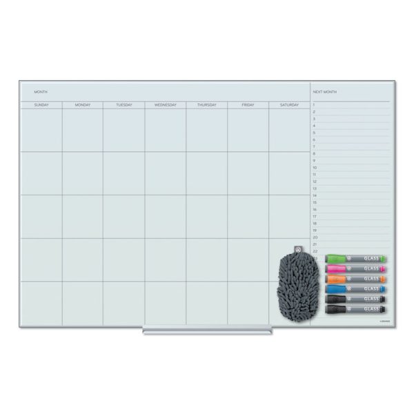 Floating Glass Dry Erase Undated One Month Calendar, 35 x 23, White