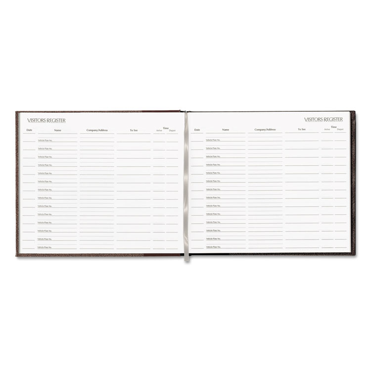 Keep track of visitors with this efficient register. Smart design features ledger paper with columns for Date, Name, Company/Address, Person to See, Arrive/Depart Times to manage a complete record of visitors comings and goings. Holds more than 1,500 entries; 14 entries per page. Convenient ribbon place marker.