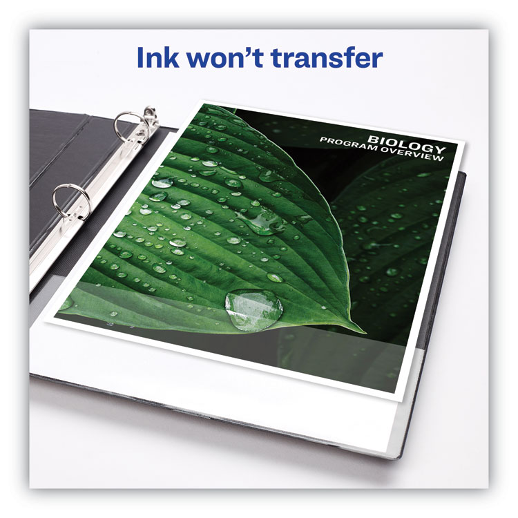 With this Heavy-Duty Nonstick View Binder you get one-touch operation and the durability required for everyday use. Nonstick material won't lift ink or toner off printed pages. Tear-resistant DuraHinge® design is stronger and lasts longer. DuraEdge® feature makes the sides and top more pliable, providing greater split resistance. Deeply textured film offers a smoother finish and features a linen pattern for a high-quality look and feel. Four clear, interior pockets provide extra storage space. Wider front and back panels fully cover standard dividers and sheet protectors. Slant rings have a higher page capacity when compared to the same size round rings. Pages lie flat with back-mounted rings (exposed rivets on back). Customize your title page using free templates and designs at Avery® Design & Print Online.