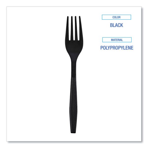 Heavyweight Wrapped Polypropylene Cutlery, Fork, Black, 1,000/carton
