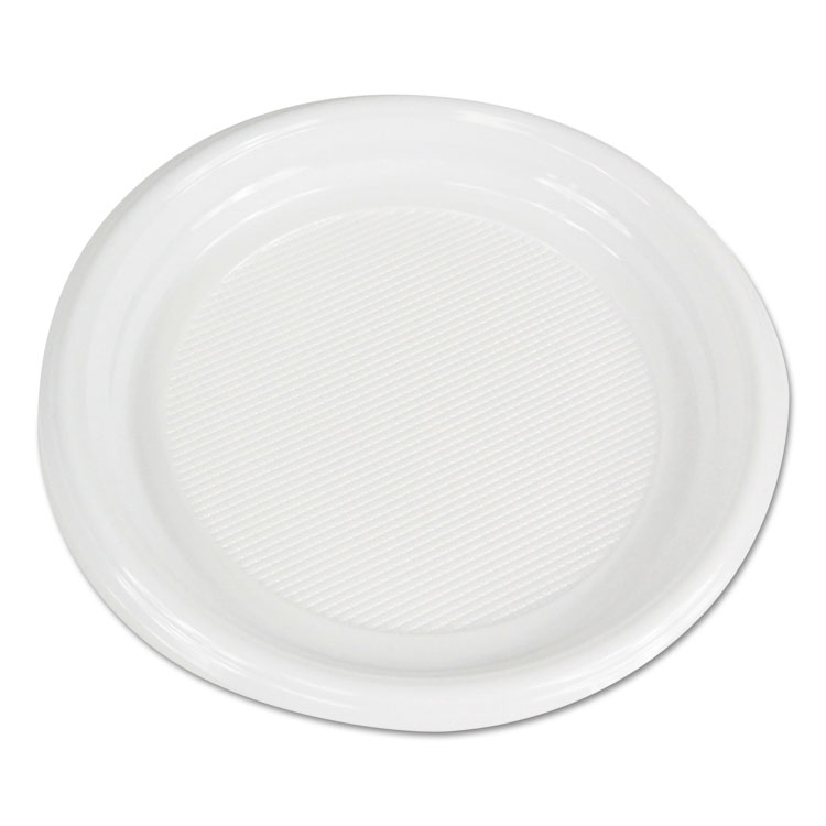Hi-Impact Plastic Dinnerware, Plate, 9" Dia, White, 500/carton