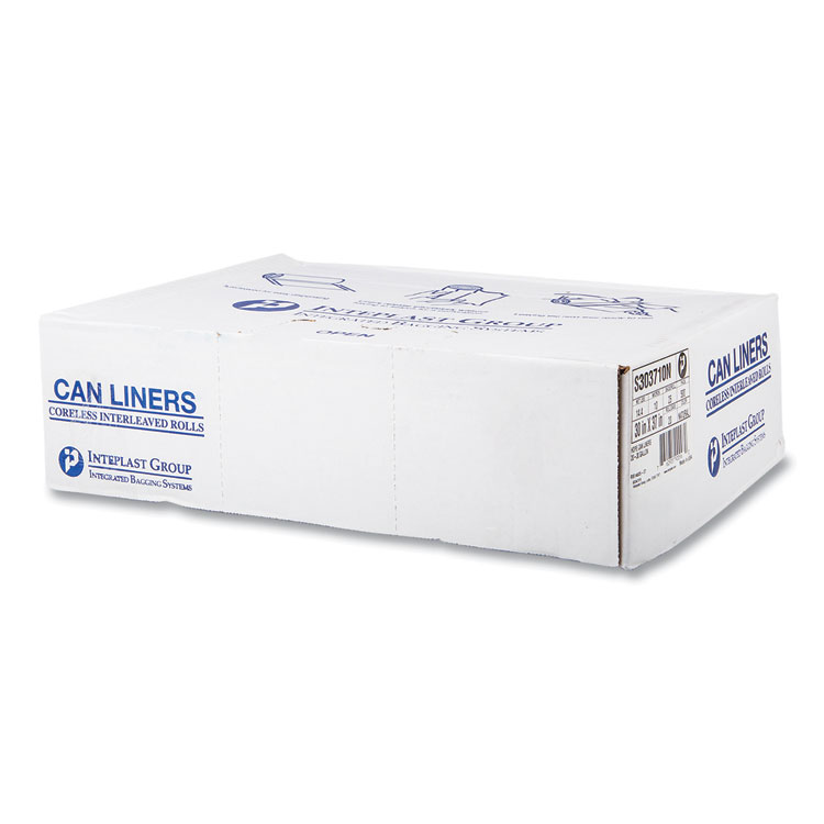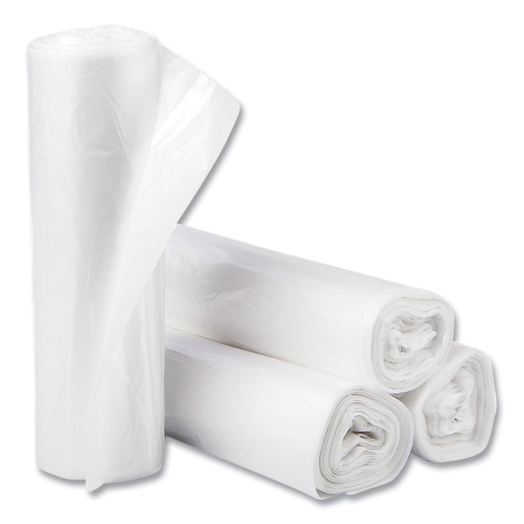 High-Density Commercial Can Liners, 30 gal, 10 mic, 30" x 37", Clear, 25 Bags/Roll, 20 Interleaved Rolls/Carton