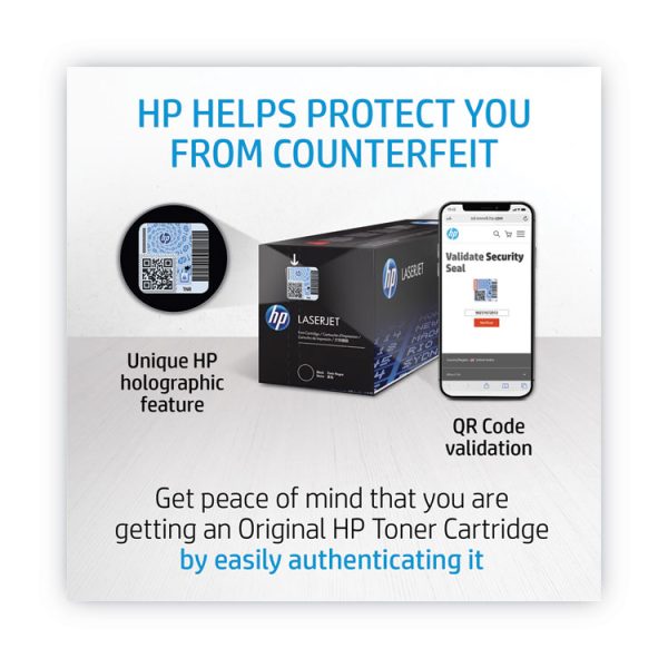 Produce office documents with crisp, black text. Original HP toner cartridges deliver consistent, print shop-quality results on a wide range of papers designed for professional office printing. Depend on trustworthy printing supplies to maintain productivity with uninterrupted printing. Because cartridges are designed for exceptional reliability, you avoid wasted supplies and expensive delays. Track cartridge use and reorder easily, with intelligence built into Original HP toner cartridges. Automatic seal removal makes installation quick and easy.