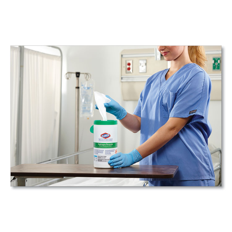 Clorox Healthcare Hydrogen Peroxide Cleaner Disinfectant Wipes kill microorganisms quickly on a broad range of surfaces. These strong and durable wipes are a one-step solution to cleaning and disinfecting. They cover greater surface area with fewer wipes, for better value and less waste. EPA-registered to kill pathogens on hard and soft surfaces in as fast as 30 seconds for most bacteria and viruses. These hydrogen peroxide wipes meet EPA criteria for use against SARS-CoV-2, the virus that causes COVID-19. Designed for patient and staff comfort, these wipes are formulated with no harsh chemical odors, fumes, or added fragrances. Intended for use in commercial settings.