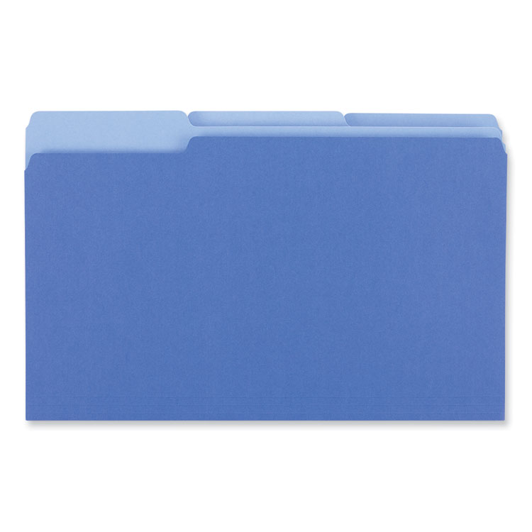 Interior File Folders, 1/3-Cut Tabs: Assorted, Legal Size, 11-pt Stock, Blue, 100/Box