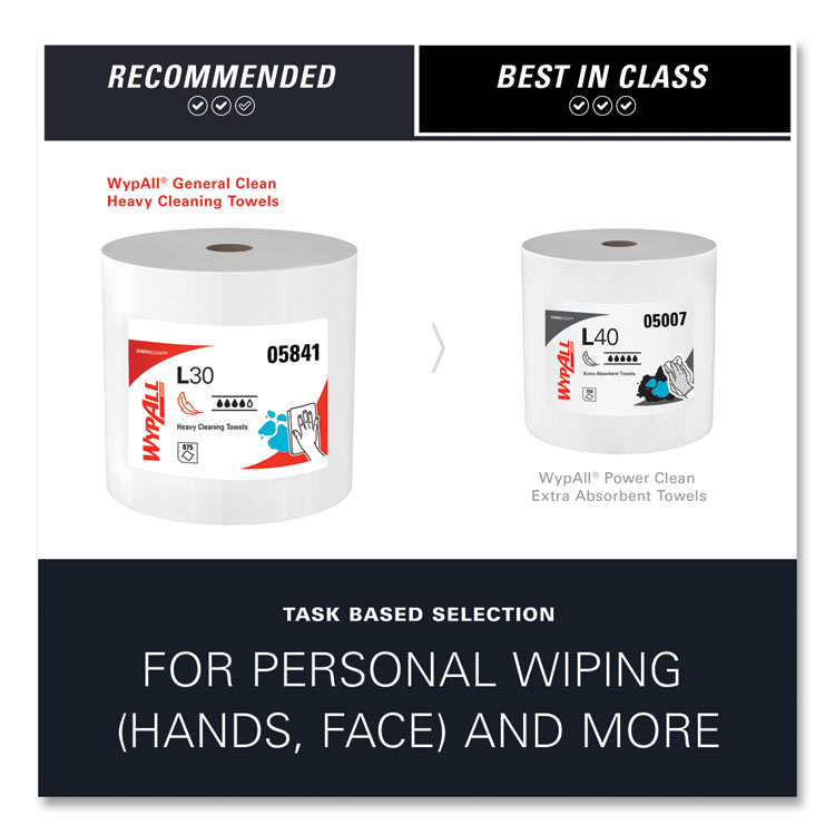 Regardless of your task, industry or budget, our WypAll® wipes, towels and cloths are designed to give you the durability, absorbency and versatility of a laundered cloth with the cost efficiency and hygiene of a disposable. When you're looking for a lighter-weight towel at an everyday great price, you can trust WypAll* L30 Towels. They are designed with the DRC (double re-creping) process, which gives you high surface softness (a cloth-like feel) with a reinforced grid that's strong for wet surface wiping and cleaning. These WypAll* L30 Towels are a great choice to replace air laid towels. They're soft enough to use on skin, so they're popular for use in healthcare and patient care. They're also tough enough for light-duty processing, janitorial tasks and maintenance (as an alternative to cloth rags). These towels are a trusted tool to help you get the job done right. As we look towards the future, Kimberly-Clark Professional is committed to providing a wide collection of essential products and services that help make your workplace exceptional. Our dedication to innovation has helped businesses confidently navigate change and empowered people at work for nearly 150 years and we are committed to do so for years to come.