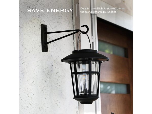 Landia Home Solar Wall Lanterns – Stainless Steel with Decorative Glass Solar Wall Lights for Outdoor, Black (2-Pack)