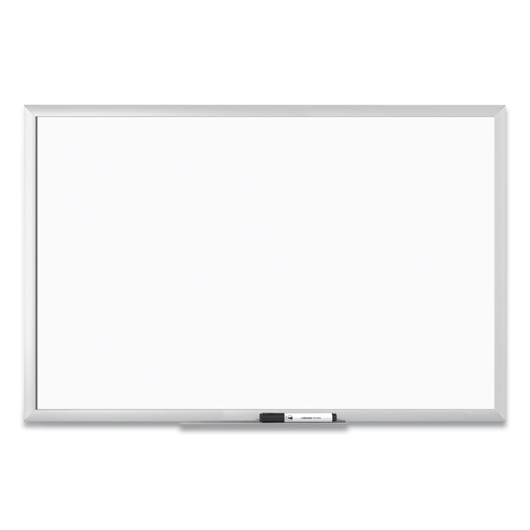 This silver aluminum frame magnetic dry erase board is a perfect and functional solution for the frequent usage areas of your office, school classroom, home or any commercial space. Although all dry erase markers work well with this board, the U Brands dry erase markers provide the ultimate writing and erasability experience. The board's magnetic painted steel writing surface will require minimal ongoing cleaning care to ensure the best performance and resist ink staining and ghosting. Simply use any dry erase board spray or wet dry erase board wipes after continuous use to clean the writing surface. The board's magnetic writing surface functions as a bulletin board as well; simply use any board magnets to pin all of your notes, messages, pictures, memos, calendars, menus, reminders and more. You may also attach all U Brands magnetic board markers and accessories (sold separately) to the board surface without using the marker tray. Strong and thick insulation underneath the dry erase surface, combined with the aluminum frame provides a firm and rigid construction. This whiteboard has a universal mounting system, as it can be hung vertically or horizontally to fit your allocated space.
