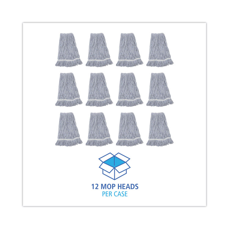 Mop Head, Floor Finish, Narrow, Rayon/polyester, Large, White/blue, 12/carton