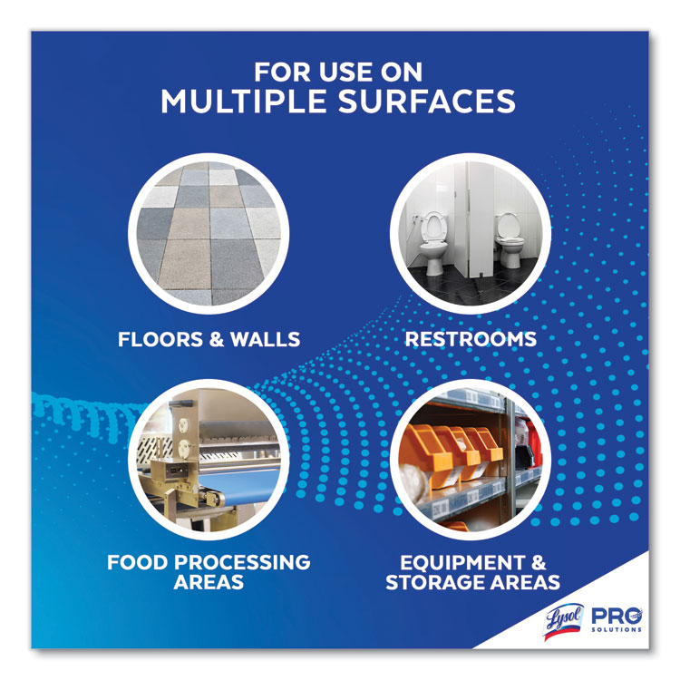 Optimize cleaning efficiency and meet high-volume sanitizing needs with Professional Lysol® No Rinse Sanitizer Concentrate, ideal for use in food service and processing areas. Confidently uphold food code requirements with the no-rinse formula that’s perfect for a 3-bin sink and clean-in-place applications. Effectively sanitize food and drink preparation and service areas, hospitals, nursing homes, physician offices, hotels, and more. Help staff keep commercial kitchens, storage areas, and restrooms sanitized. Save time and money with the economical, concentrated formula that can be diluted on-site for up to 512 gallons of sanitizing solution in eating establishment areas.