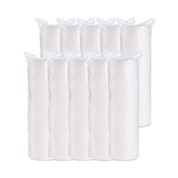 Plastic Lids for Foam Cups, Bowls and Containers, Flat, Vented, Fits 6-32 oz, Translucent, 100/Pack, 10 Packs/Carton