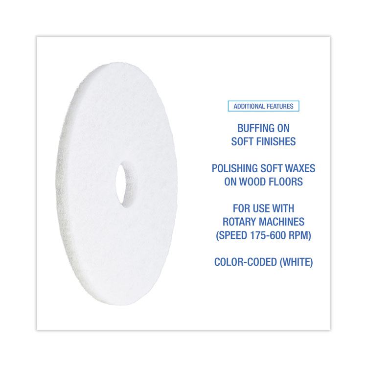 Polishing Floor Pads, 16″ Diameter, White, 5/carton