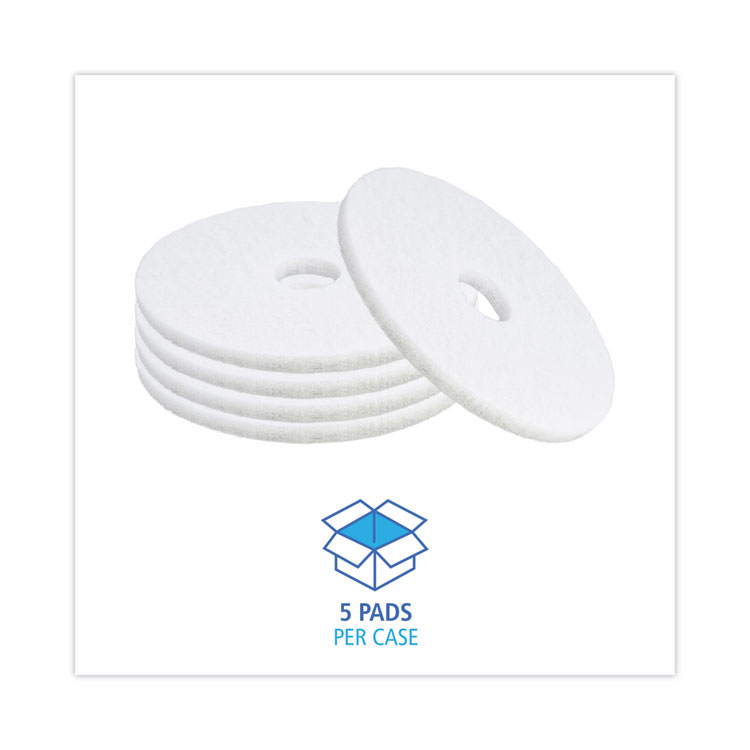 Polishing Floor Pads, 16" Diameter, White, 5/carton