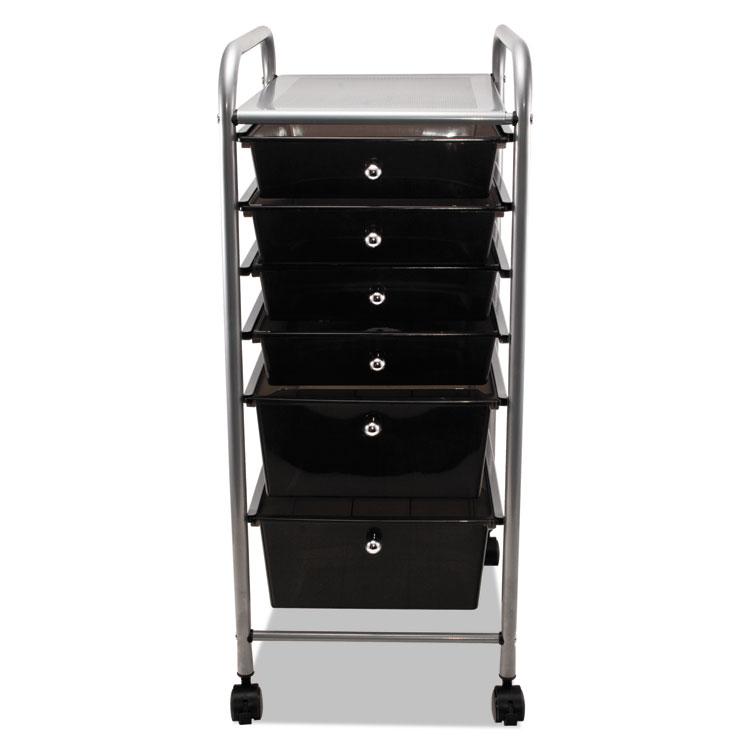 This rolling cart is a simple storage solution for a home office or workspace. The cart holds slide-out drawers for organizing paperwork, office supplies, small tools, and other items. Also features 360-degree rotating wheels for easy mobility with two locking casters to keep the cart securely in place.