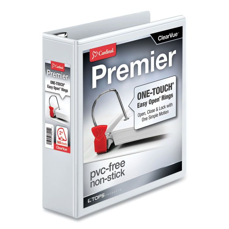ONE-TOUCH® Easy Open® Slant D® rings open, close and lock with one simple motion. Heavy-duty construction equals lasting durability. ClearVue™ covers for three-sided customization: insert custom title sheets on the front, back and spine for a professional looking presentation. PVC-free.
