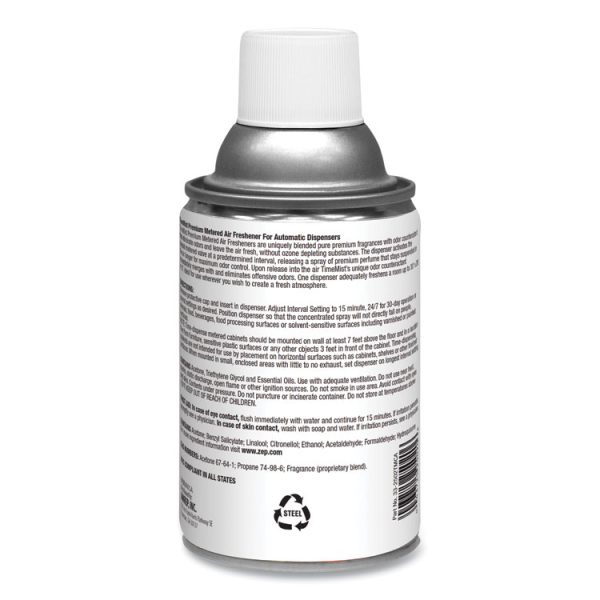Complex high quality fragrance with essential oils and dual odor counteracts ensuring 30 day long lasting experience. For use with TimeMist® Metered Aerosol Dispensers (sold separately).