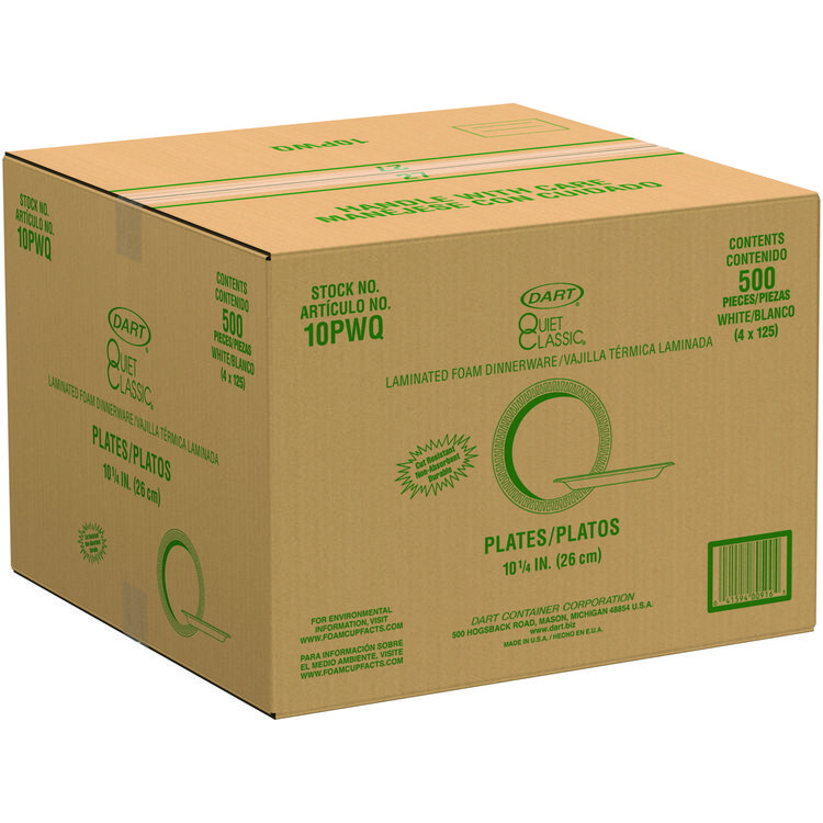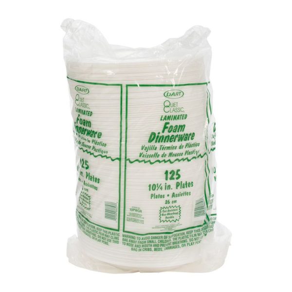 Quiet Classic Laminated Foam Dinnerware, Plate, 10" dia, White, 500/Carton
