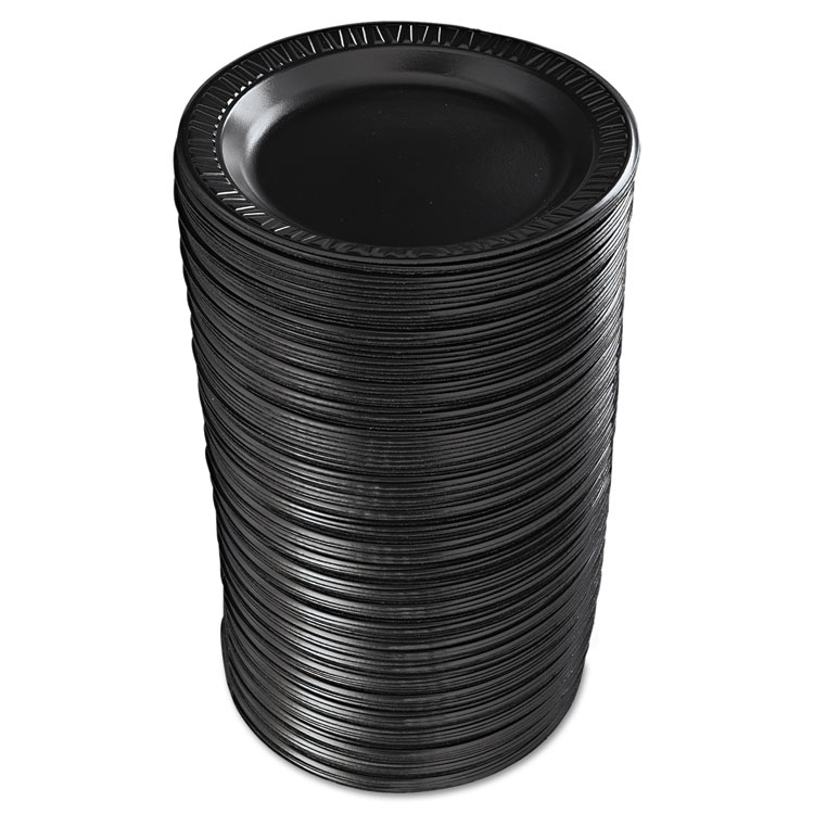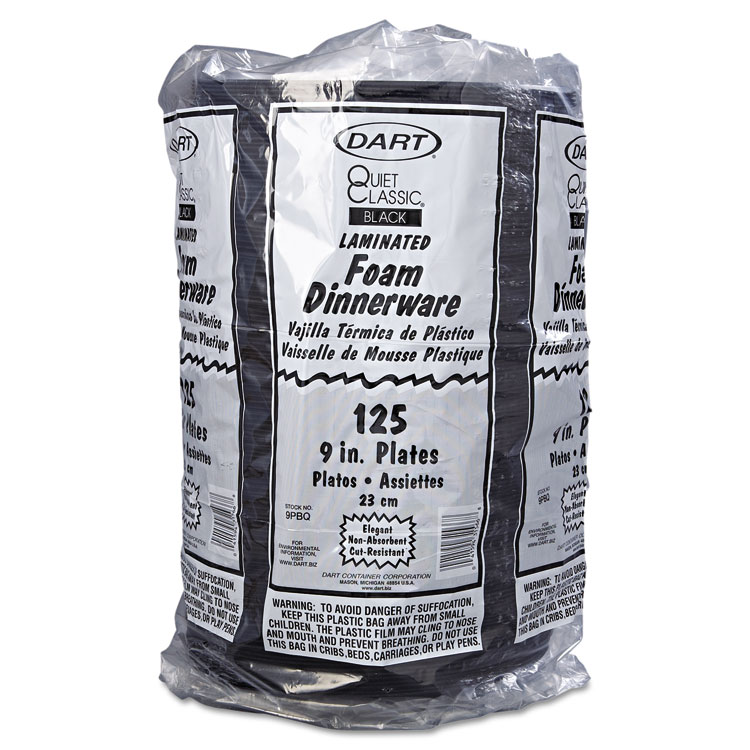 Quiet Classic Laminated Foam Dinnerware, Plate, 9" Dia, Black, 125/pack, 4 Packs/carton