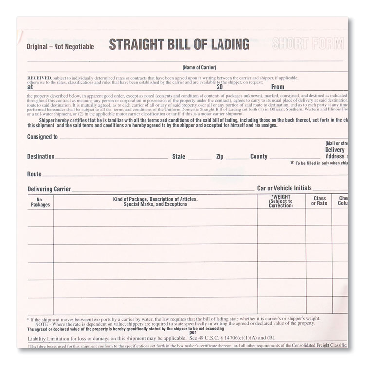 Snap-A-Way Bill of Lading, Short Form, Three-Part Carbonless, 7 x 8.5, 250 Forms Total