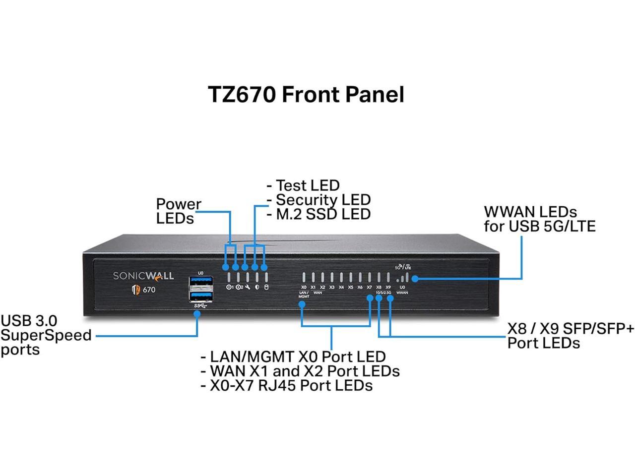 SonicWall TZ670 Network Security Appliance and 2YR Secure Upgrade Plus Essential Edition (02-SSC-5659)