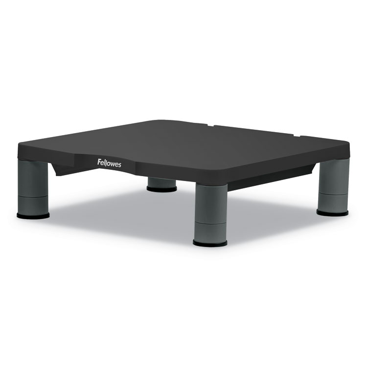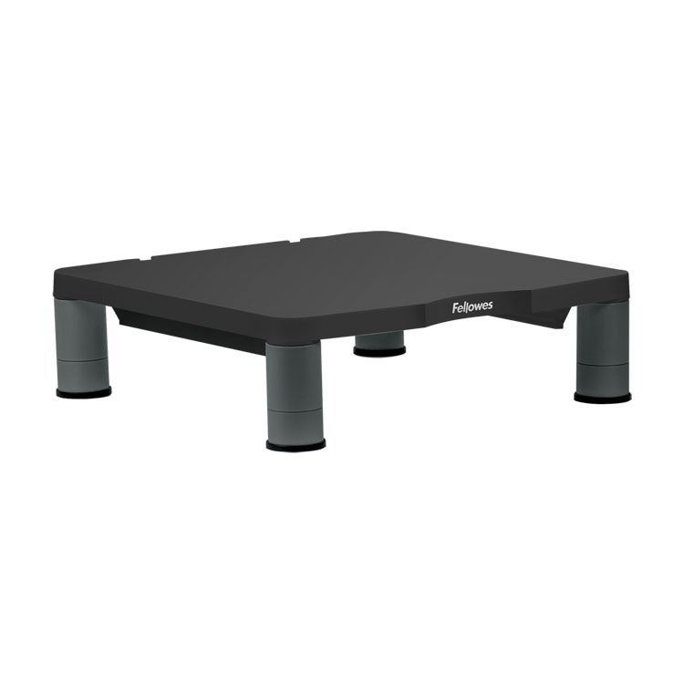 Fellowes Standard Monitor Riser features innovative stacking columns that raise monitor to comfortable viewing height. Supports 21" monitor or a maximum weight of 60 lb. Features three different height adjustments from 2" to 4". Space-saving design with high-impact plastic construction. Includes convenient cord management and non-skid rubber feet. Perfect for the office or home office, school, or wherever you'd like to organize your workspace.