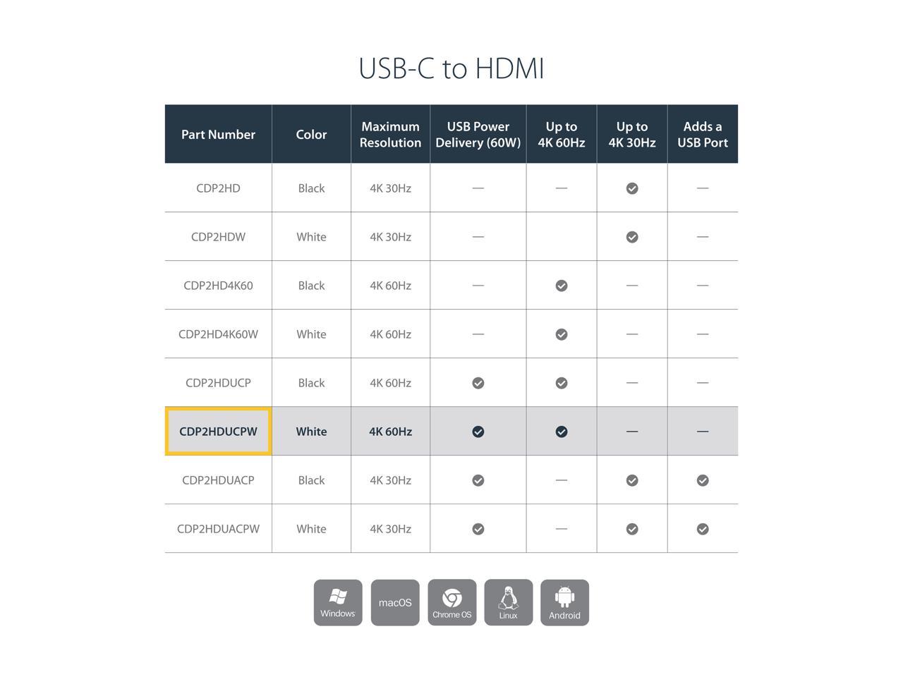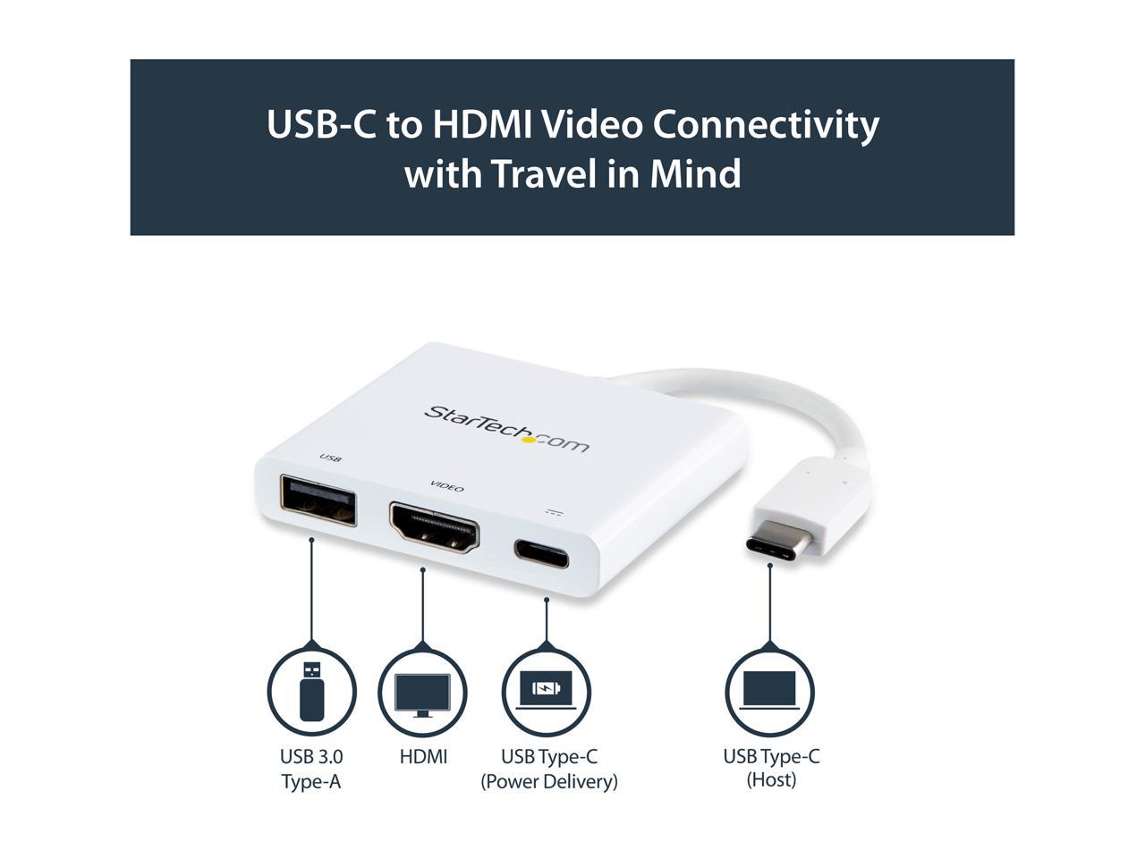StarTech.com CDP2HDUACPW USB-C to 4K HDMI Multifunction Adapter with Power Delivery and USB-A Port