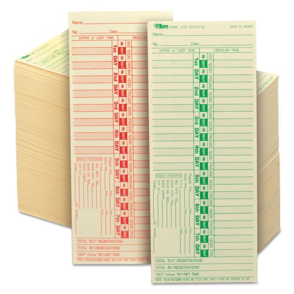 Equivalent to time clock manufacturer's time cards. 143 lb tag stock.