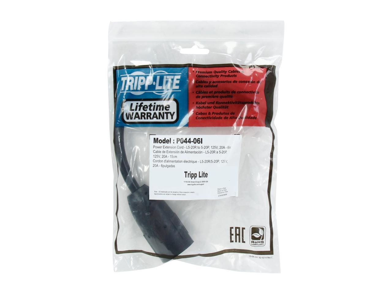 Tripp Lite Model P044-06I 6" NEMA-L5-20R to NEMA-5-20P 12AWG Heavy Duty Power Adapter Cable Female to Male