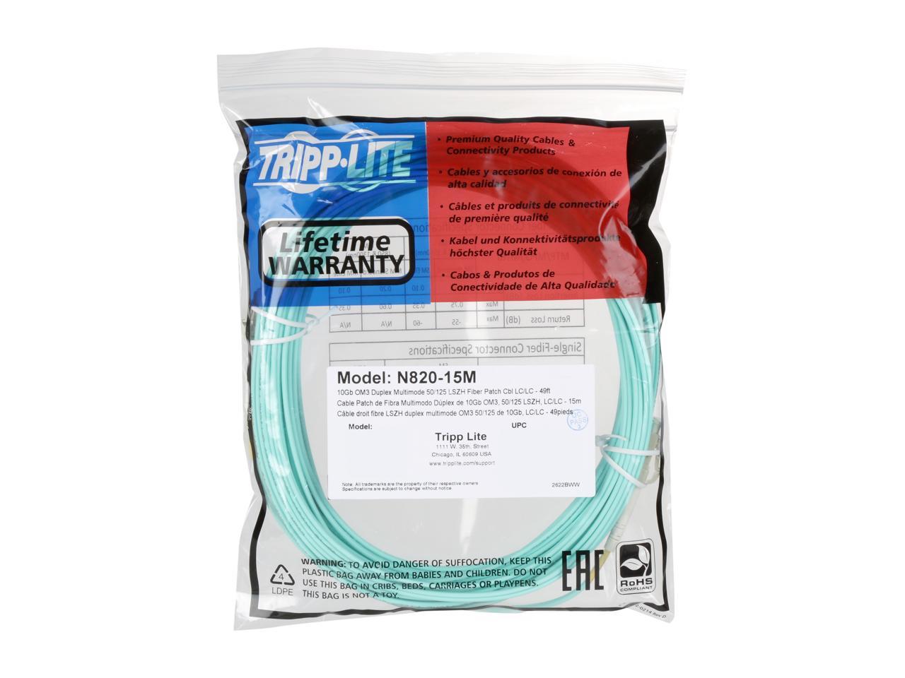 Tripp Lite N820-15M 50 ft. Aqua Duplex Fiber Patch Cable quantity