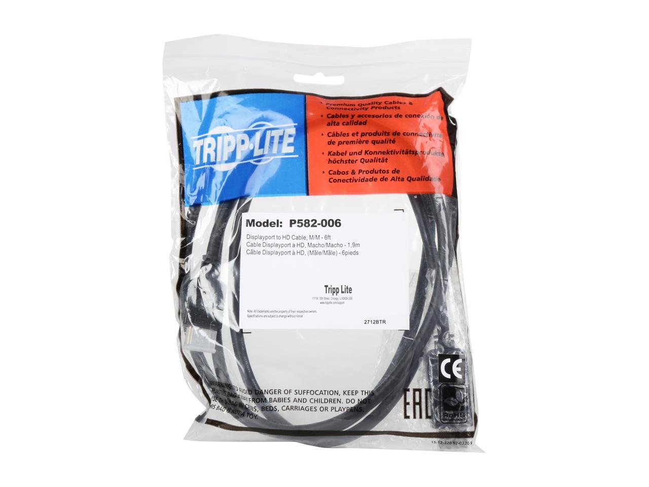 Tripp Lite P582-006 6 ft. Black Displayport Male to HDMI Male DisplayPort to HDMI Device Cable M/M Male to Male