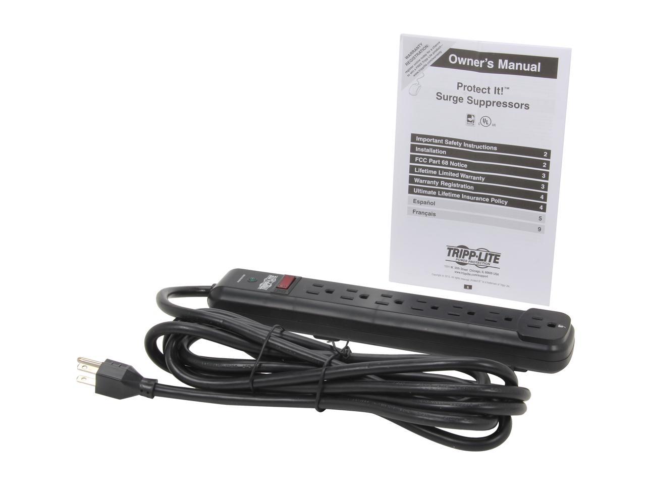 Tripp Lite TLP712B 7 Outlets 1080 Joules 12 Feet Cord Black Protect It! Surge Suppressor