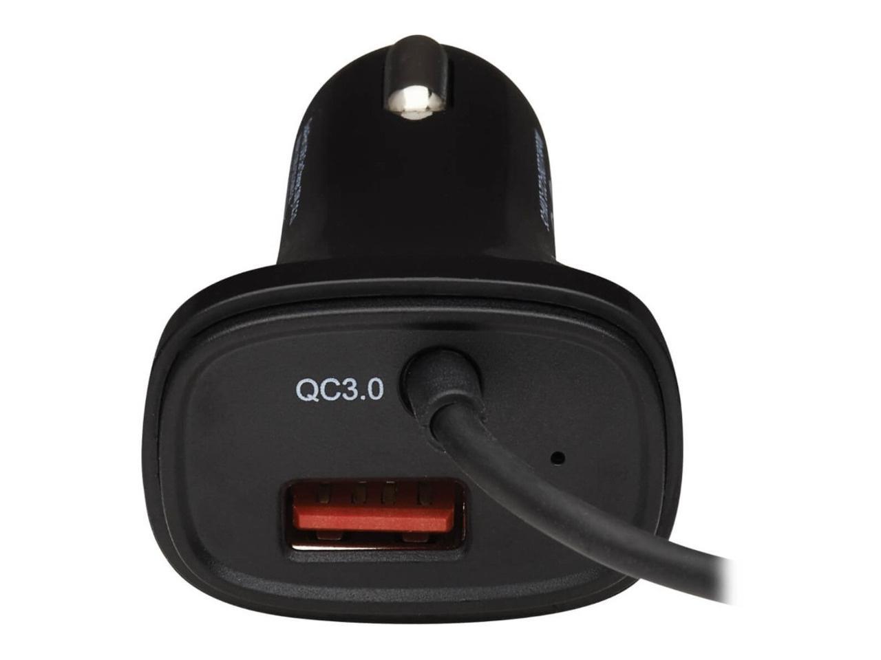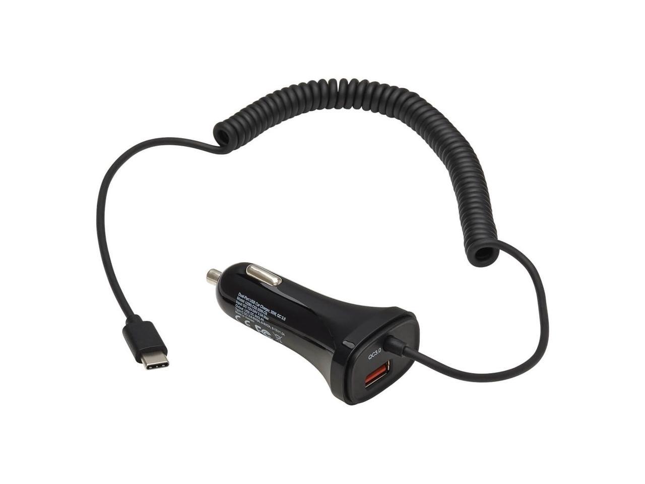 Tripp Lite U280-C02-30W-C6 Black Dual-Port USB Car Charger with 30W Charging – USB-C (18W) QC 3.0, USB-A (12W), Coiled 6 ft.